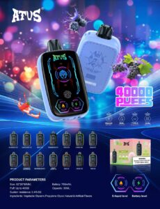 ATVS 40k Disposable Vape redefines vaping with cutting-edge technology, sleek design, and unmatched convenience. Designed to elevate your experience, this device blends advanced features with user-friendly functionality, making it perfect for both beginners and seasoned vapers.