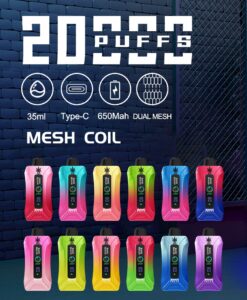 Equipped with a robust 650mAh rechargeable battery, the Bang Beach 20000 ensures consistent performance. The Type-C charging port allows for fast and efficient recharging, minimizing downtime. The advanced 1.0 ohm mesh coil guarantees smooth and rich vapor production, enhancing the flavor and consistency of every puff.
