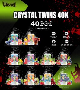Uwin vape crystal Twins 40000 Puffs Disposable Vape with its dual-flavor design, allowing users to enjoy two unique flavors in one device.